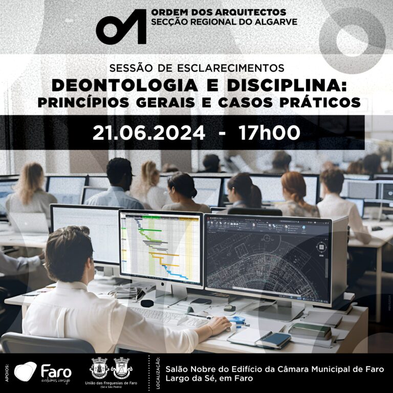 Inscrições até 18 de julho: enviar e-mail para algarve.geral@ordemdosarquitectos.org, indicando o nome, o n.º de membro e se deseja participar via zoom ou presencialmente.