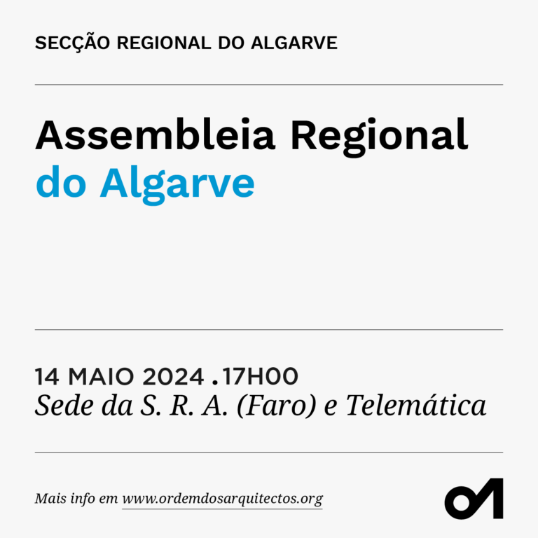 A participação dos membros está sujeita ao cumprimento de validação prévia, nos termos da Convocatória: envio do nome completo e número de membro para: algarve.assembleia@ordemdosarquitectos.org (até às 16h00 do dia 13 de dezembro de 2023).