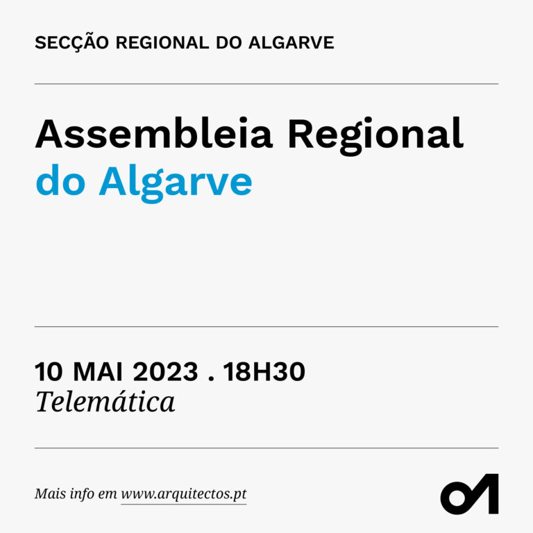 A participação dos membros está sujeita ao cumprimento de validação prévia, nos termos da Convocatória: envio do nome completo e número de membro para: algarve.assembleia@ordemdosarquitectos.org (até às 16h do dia 10 de maio de 2023)